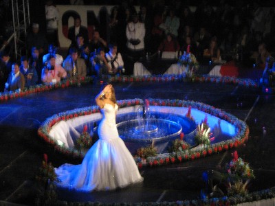 聖土曜日、街に出るとガウチョの行進が永遠と続いていた。その夜8時、ミス・リオバンバ・コンテストが行われた。道路は警察が封鎖規制をし、物々しい警戒態勢だ。エクアドル時間を予想してやや遅れて会場に入ると、状況は全く違う。既に超満員、空席は見当たらない。候補者の応援団が太鼓や旗、写真をかざし、大変な騒ぎだ。サッカー以上の盛り上がりだ。審査員が紹介された。ミス・クエンカ、ミス・エクアドル、ミス・ワールド代表も審査に加わる。アトラクションが始まった。立ったままでの観覧だ。